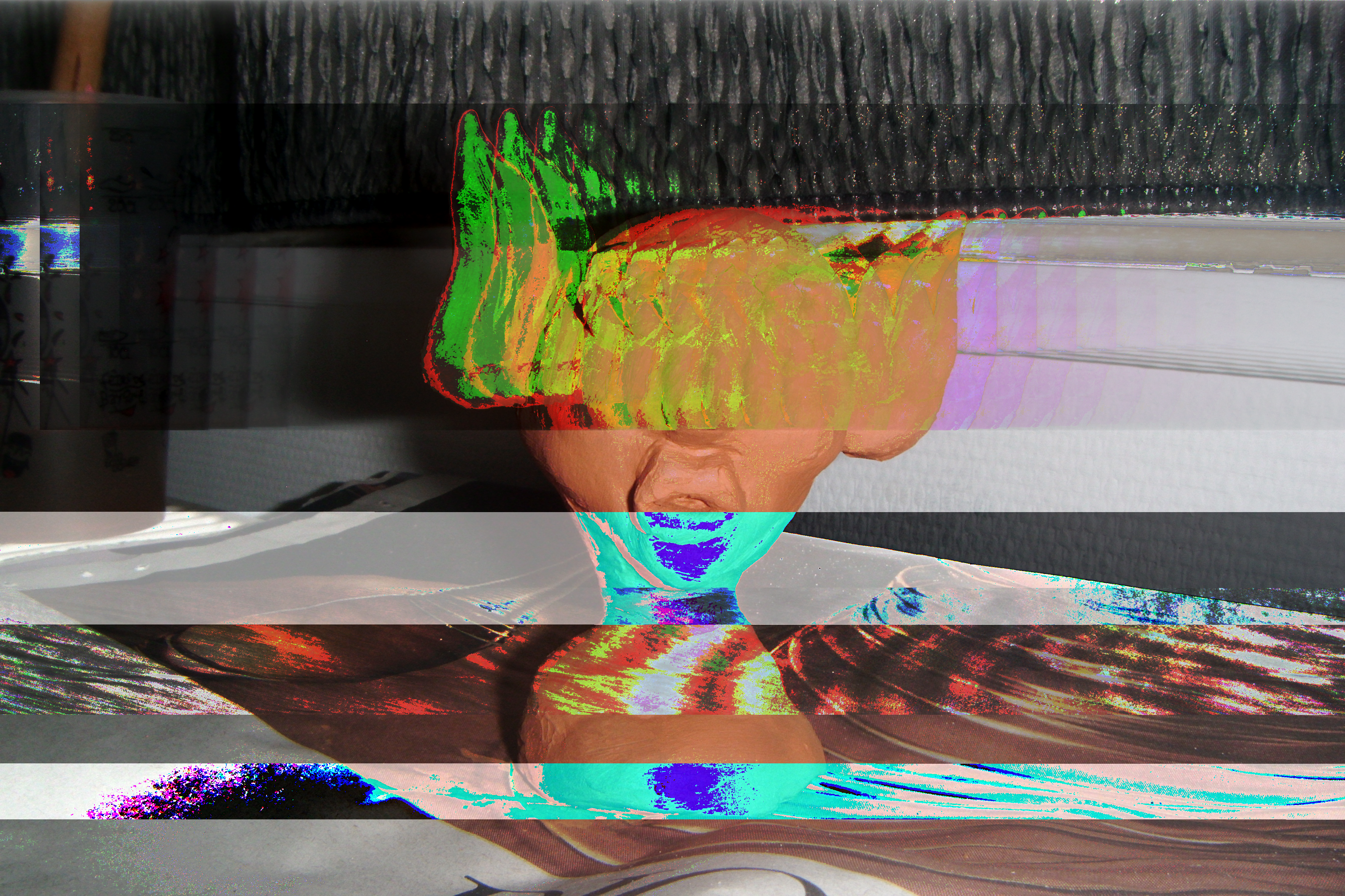 Série de photographies modifiées par databending, en important les photographies initiales sur le logiciel de traitement sonore Audacity, ensuite altérées par une modification de la waveform obtenue (ajout d'effets, cuts, déplacement de sections).